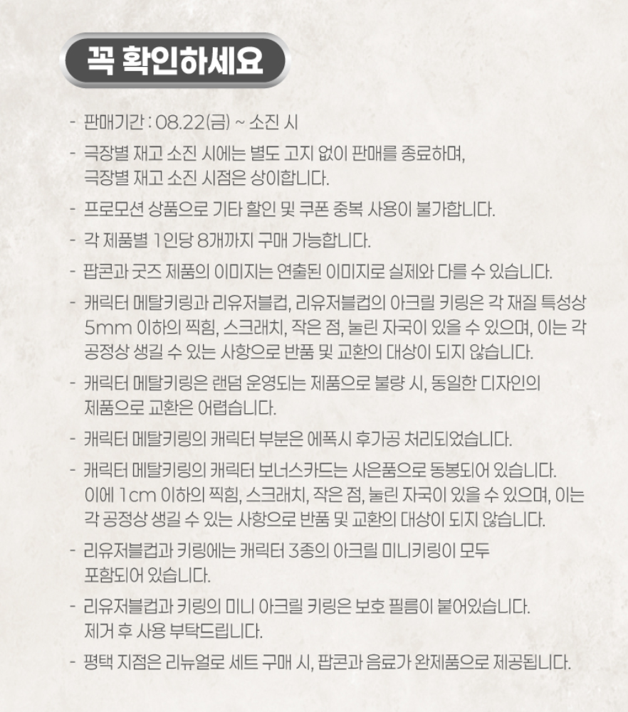 • 재고 문의는 현장 혼선이 많으니 앱 공지/극장 SNS로 1차 확인.